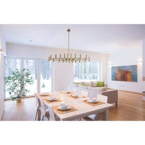 Os pendentes são tendência em projetos de iluminação decorativa no mundo, sejam eles projetos residencial, comerciais ou empresariais. O Pendente Vinte Dourado (D)120Cm (L)60Cm (A)15Cm 20X3W 3000K 4200Lm da Bella Iluminação, é o produto é perfeito para compor a decoração de sala de estar, sala de jantar, hall, varanda e trará ao seu ambiente a exclusividade e a elegância almejada Acabamento: Metal Acompanha Lâmpada: Sim Altura: 15 cm Altura Regulável: Sim Ambiente de Iluminação: Interno Ambiente Principal: Sala de Jantar Complexidade da Montagem: Alta: deve ser montado por um montador especializado Comprimento do Cabo: 100 cm Cor: Dourado Cor do Acabamento: Dourado Cor do Produto: Dourado Cor Predominante: Dourado Diâmetro: 120 cm Direção da Luz: Iluminação para baixo Escala de Brilho: Semi-brilho Estilo: Moderno Formato: Redondo Garantia do Fornecedor: 12 meses Informações Complementares: Produto com Led integrado. Na temperatura de cor de 3000K Largura: 120 cm Linha ou Coleção: Vinte Materiais Secundários: Poletileno Material Principal: Aço Necessita Montagem: Sim Origem do Produto: Importado Peso: 6,128 kg Potência: 60 W Profundidade: 120 cm Quantidade de Itens: 1 Quantidade de Lâmpadas: 20 Recomendações de Uso, Manutenção e Limpeza: Em relação a limpeza do produto:• Não utilize água, solvente ou material abrasivo;• Peças de vidro ou de acrílico, quando removíveis, podemser lavadas com sabão neutro. * Certifique-se de que estão secas quando for recolocá-las no corpo do produto.• Nunca utilize álcool para a limpeza de peças de acrílico. Sistema de Montagem: Produto com LED integrado ao produto Soquete: G24d-2 Tamanho do Produto: (D)120Cm X (A)15Cm Temperatura da Cor: 3000K Tipo de Luminária: Pendente Voltagem: Bivolt Ean: 7899830223603