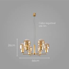 - Cor: Metal em ouro fosco e vidros âmbar