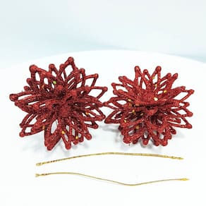8 Conjunto com 2 Peças Flores Vermelhas com Glitter de 8cm