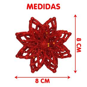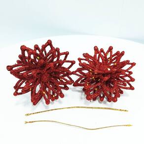 4 Conjunto com 2 Peças Flores Vermelhas com Glitter de 8cm