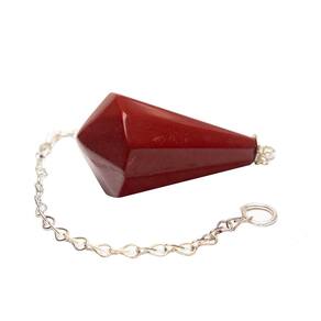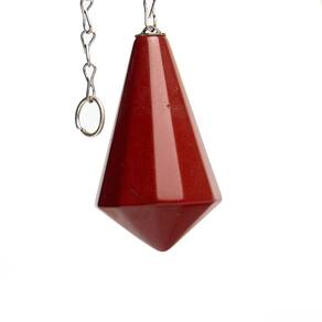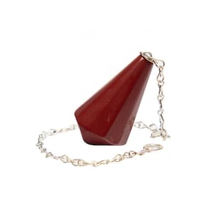 Pêndulo de Jaspe Vermelho - Poder e Equilíbrio Energético Desperte seu potencial energético com o Pêndulo de Jaspe Vermelho! Este pêndulo piramidal em Jaspe Vermelho com lapidação manual e ponta invertida oferece precisão e equilíbrio ideais para a prática de Radiestesia e Radiônica. A forma piramidal invertida ajuda a centralizar o peso, proporcionando maior estabilidade e controle durante o uso. Características Principais:\nNome da Pedra: Jaspe Vermelho Sangue Cor: Vermelho Sangue Intenso Corte: Pêndulo Piramidal com Ponta Invertida Lapidação: Manual, garantindo qualidade única e personalizada Brilho e Claridade: Denso e Brilhoso, sem cristalização Medidas: Aproximadamente 25 a 40 mm (tamanho pode variar levemente devido à natureza das pedras) Montagem: Tulipa colada + Corrente banhada em prata Origem: Pedra da África, manufatura e lapidação em Cristais de Curvelo - MG\nBenefícios do Jaspe Vermelho:\nVitalidade e Energia: O Jaspe Vermelho é uma pedra poderosa para aumentar a energia vital, promovendo equilíbrio físico e emocional. Proteção e Equilíbrio Energético: Ideal para práticas de Radiestesia, o pêndulo de Jaspe Vermelho ajuda a captar energias e identificar bloqueios, proporcionando maior clareza e proteção espiritual. Foco e Determinação: Esta pedra é especialmente recomendada para quem busca motivação e clareza mental em processos de autoconhecimento e cura energética. Harmonização do Chacra Raiz: O Jaspe Vermelho é conhecido por suas propriedades de terra e equilíbrio, sendo excelente para quem deseja fortalecer sua conexão com o corpo e a terra.\nPor que escolher o Pêndulo de Jaspe Vermelho?\nQualidade Premium: Lapidado manualmente, cada pêndulo é único e feito com pedras de alta qualidade, garantindo uma experiência única e eficaz. Versatilidade: Perfeito para práticas de Radiestesia, Radiônica, meditação, terapia holística e equilíbrio energético diário. Design Exclusivo: O formato piramidal invertido é ideal para garantir maior estabilidade e precisão durante as sessões de Radiestesia.\nObservações Importantes:\nPiedra Natural: O pêndulo de Jaspe Vermelho pode apresentar variações de cor e pequenas inclusões, características normais de minerais autênticos. Foto Ilustrativa: A imagem é exemplar, e as pedras podem variar ligeiramente em tamanho e tonalidade.\nTransforme sua Energia com o Pêndulo de Jaspe Vermelho! Aumente seu equilíbrio energético e proteja sua aura com a poderosa energia do Jaspe Vermelho! Marca: CristaisdeCurvelo