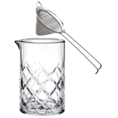 Kit com 1 copo Mixing Glass Barpro e 1 Peneira cônica 8cm com dupla malha Nilos Decor