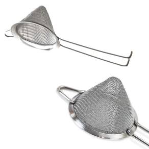 Peneira Cônica em aço inox para dupla coagem Nilos Decor: Peneira Cônica com haste dobrada e diâmetro de 8cm com altura de malha de aproximadamente 5cm, com dupla malha para maior resistência e Mais eficiência na coagem. Vem com a haste dobrada para facilitar o manuseio.