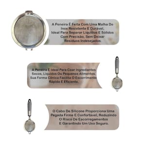 Com design moderno e funcional, ela é perfeita para peneirar farinhas, coar líquidos, lavar grãos e outros alimentos com rapidez e segurança. O cabo ergonômico em silicone garante firmeza durante o uso, proporcionando mais conforto e estabilidade no manuseio. A estrutura da peneira passa por tratamento térmico, garantindo maior desempenho e durabilidade. Compacta e versátil, é uma excelente escolha tanto para cozinhas domésticas quanto para ambientes profissionais.