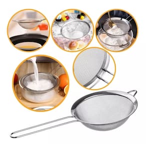 Peneira em Aço Inox autêntico Line 12cm - Prática, Durável e Versátil para Cozinha - PANAMI A Peneira em Aço Inox autêntico Line 12cm é uma ferramenta indispensável para qualquer cozinha, seja profissional ou doméstica.Com um diâmetro de 12cm, ela oferece praticidade, durabilidade e versatilidade, sendo ideal para uma variedade de tarefas culinárias, como coar, peneirar ou filtrar alimentos.Feita em aço inoxidável, essa peneira é resistente, fácil de limpar e mantém sua qualidade por muito tempo. A peneira possui um diâmetro de 12cm, um tamanho compacto e funcional, perfeito para tarefas que exigem precisão e eficiência.O aço inox garante que o produto seja resistente à corrosão, não acumule odores e mantenha sua aparência como nova por anos. Material: Aço inoxidável de alta qualidade.Diâmetro: 12cm (tamanho ideal para tarefas práticas e precisas).Design: Prático, durável e fácil de manusear.Resistência: Anti-ferrugem, Não retém odores, Resistente a altas temperaturas. Pode ser usada para coar chás, caldos, molhos, iogurtes, entre outros.Ideal para peneirar farinhas, açúcar, especiarias e ingredientes secos.Adequada para uso em pias ou sobre panelas. Facilidade de Limpeza: Pode ser lavada à mão ou em lava-louças.Durabilidade: O aço inox garante um produto que dura anos sem perder sua funcionalidade.Higiene: Material não poroso, que não acumula bactérias ou resíduos.Estilo: Design moderno e sofisticado, que combina com qualquer cozinha.Multiuso: Pode ser utilizada em diversas etapas da preparação de alimentos. Coar líquidos como chás, caldos e molhos.Peneirar farinhas, açúcar e outros ingredientes secos.Filtrar iogurtes caseiros ou queijos.Tamanho compacto ideal para tarefas que exigem controle e precisão. Observações:Evite o uso de abrasivos fortes na limpeza para preservar o brilho do aço inox.Guarde em local seco para evitar umidade excessiva. 01 Peça Imagens Meramente Ilustrativas Loja Panami