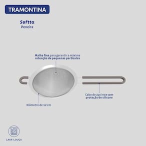 A Peneira Tramontina Softta em Aço Inox com Cabo de Polipropileno Cinza 12 cm é a escolha perfeita para quem valoriza um preparo refinado e eficiente. Sua malha fina permite filtrar ingredientes com precisão, retendo até as menores partículas. Feita em aço Inox, é resistente e fácil de limpar, e o cabo em silicone oferece conforto. Além disso, é compatível com lava-louças, trazendo mais praticidade para sua rotina