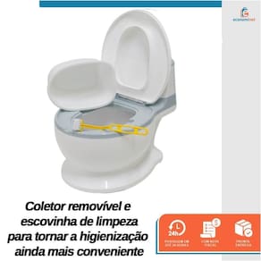 O Penico Privadinha Flush da Baby Style é um penico em formato de privadinha, projetado para crianças com 6 meses ou mais durante a transição para o uso do vaso sanitário. Ele possui um reservatório para papel ou lenços umedecidos, um assento confortável e uma função de descarga com barulho realista, tornando a experiência mais divertida e envolvente para a criança. Além de facilitar a independência da criança, o penico cria memórias positivas durante essa fase crucial do desenvolvimento.