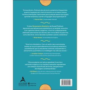 O pensamento estatístico vem se tornando imprescindível para entender o nosso mundo complexo e tomar decisões respaldadas em dados incertos. Este livro perspicaz de graduação apresenta aos estudantes os principais conceitos da estatística, privilegiando a compreensão profunda em vez da memorização ou da imersão matemática. Os conceitos são apresentados de forma moderna, compartilhando as ideias inovadoras das áreas de aprendizado de máquina e de ciência de dados, que ajudam os estudantes a usar métodos estatísticos de maneira eficaz para fazer perguntas sobre os dados. Pensamento Estatístico fornece as ferramentas para descrever padrões complexos que emergem dos dados, realizar predições com acurácia e tomar decisões com base nos dados. • Apresenta a estatística de um prisma exclusivamente moderno, ajudando os estudantes a empregar os conceitos básicos de estatística para analisar dados reais; • Apresenta modelos estatísticos que vinculam uma ampla série de técnicas estatísticas, as quais podem ser usadas para responder a diversos tipos de perguntas; • Explica como usar a estatística para gerar resultados reproduzíveis e evitar erros comuns na prática dela; • Inclui uma grande variedade de exemplos que usam dados do mundo cotidiano; • Disponibiliza códigos em R e Python, gratuitamente e online via GitHub, possibilitando que os leitores acompanhem como cada exemplo é gerado e usem a programação para fazer as próprias análises.