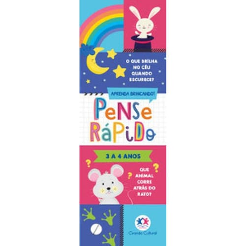 PENSE RÁPIDO 3 A 4 ANOSEste livro vem com muitas perguntas e ilustrações para trabalhar o raciocínio lógico, a memória e outras habilidades. Os adultos também participam da brincadeira lendo as perguntas para as crianças. Diversão e aprendizado em um só lugar.Mais detalhes:Subtitulo: PENSE RÁPIDO 3 A 4 ANOSPaginas: 50Tipo de capa: BROCHURAISBN: 9786555003680ISBN10: 6555003685Data Publicação: 30/12/1899Idioma: INDEFINIDOEdição: 1Condição do Item: NovoTipo de narração: 30/12/1899