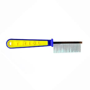 O aço inoxidável é resistente à corrosão, durável e fácil de limpar, o que o torna ideal para uso em produtos de cuidados para pets. O número de dentes é suficiente para trabalhar em diferentes tipos de pelagem, permitindo um trabalho mais eficaz na remoção de nós e sujeira.
