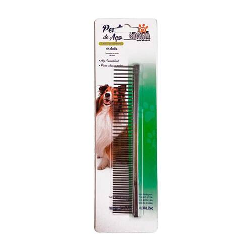 Pente de Aço Savana Pet com 61 Dentes - Indicado para cães e gatos; - Contém 54 dentes, 24 largos e 37 estreitos; - Evita nó e embaraços; - Remove pelo morto indesejável.