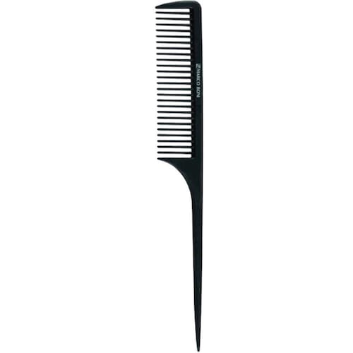 O pente de carbono tem om dentes médios e espaçados, cabo separador de mechas