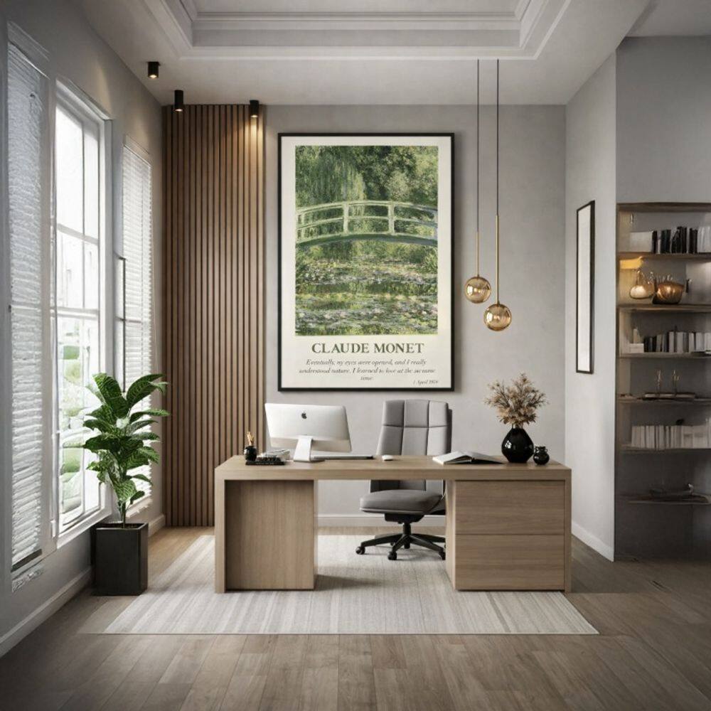Quadro Canvas Ponte Lagoa Lírios Monet 40x30cm Mold Preta