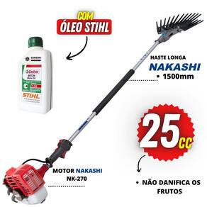 Itens Inclusos: 1 Haste Profissional Nakashi, 1Kit Derriçador Nakashi KD 257-D, 1 Motor Nakashi NK 270, 1Manual de Instrução e 1 Óleo Stihl.