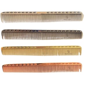 Pente metal alumínio para barbeiros Cor: preto Pente de metal inox anti estático pequeno short Pente desenvolvido nos mais altos níveis de qualidade resistente ao calor para barbeiros e cabeleireiros, feito de alumínio metal antiestético e indicado para cortes de cabelo comprido e curto. Ideal para processos químicos, pente esterilizável, desenvolvido para não arranhar o seu couro cabeludo ou danificar o seu cabelo. Possui um design elegante e alta qualidade além de ser fácil de usar. Alta qualidade Antibacteriano Antiestático Conveniente de usar Design elegante Feito de aço inoxidável de alta qualidade Não arranha seu couro cabeludo Facilita a separação do cabelo Não danifica seu cabelo Ótima qualidade Resistente ao calor Unissex Tamanho short Largura 2,5 cm Largura 2 cm Comprimento: 18cm Tipo de material: Metal inox / alumínio