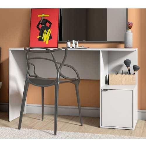 Sendo peça-chave no dormitório esse móvel reúne funcionalidade e beleza, trazendo mais charme ao ambiente. Produzido em MDP 15mm e acabamento em BP, possui 1 porta com amplo espaço interno e 1 nicho para acomodar seus objetos. Conta com puxador de metal, dando um toque de modernidade. Além de dar um toque todo especial no ambiente, ter uma penteadeira facilita sua rotina de beleza com os produtos que você deseja sempre à mão e organizados.