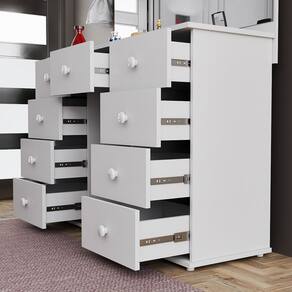 A penteadeira branca em MDP é a escolha perfeita para quem busca organização, elegância e praticidade no dia a dia. Com design moderno e acabamento clean, ela se adapta facilmente a diferentes estilos de quarto, trazendo leveza e sofisticação ao ambiente. Conta com espelho amplo, ideal para maquiagem e cuidados pessoais, além de várias gavetas espaçosas que facilitam a organização de cosméticos, perfumes, acessórios e objetos pessoais. Produzida em MDP de qualidade, oferece boa resistência e durabilidade para o uso diário.