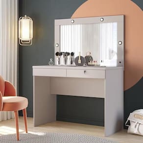 A Penteadeira Camarim Capricho da jcm Móveis veio para deixar seu quarto mais elegante e sofisticado. Feito em material de excelente qualidade traz mais resistência e durabilidade. Possui 02 gavetas, espelho e iluminação LED proporcionando mais conforto na hora de se produzir.