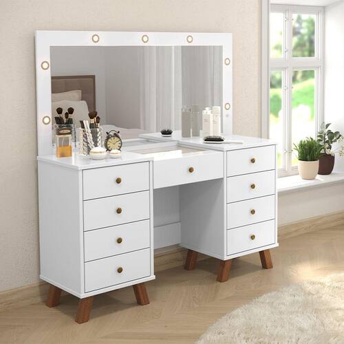 Penteadeira Camarim 9 Gavetas Eloa Completa C/ led + Espelho Patrimar - Branco