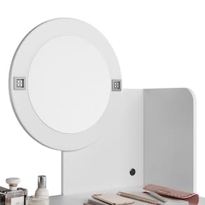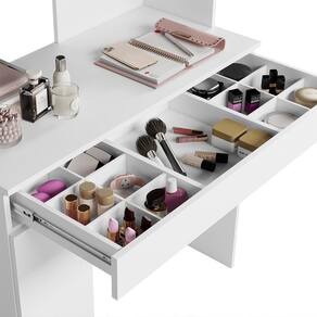 A Penteadeira Camarim Áurea 1 Porta e 1 Gaveta é o toque de sofisticação que você precisa para transformar sua rotina de beleza. Com uma estrutura em MDP, ela traz durabilidade e um visual moderno. A gaveta com corrediças telescópicas e divisórias organizadoras facilita o armazenamento dos seus itens pessoais, enquanto a porta com prateleira interna oferece espaço extra para organização. As duas luminárias de LED, integradas ao espelho redondo ( 0,33m), garantem a iluminação perfeita a qualquer hora do dia. Um modelo atemporal que eleva sua experiência de uso.
