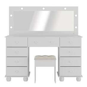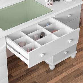 São 9 gavetas que auxiliam na separação de maquiagens, acessórios e diversos objetos, deixando o ambiente mais funcional para o uso diário. Acompanha banqueta que complementa o conjunto.