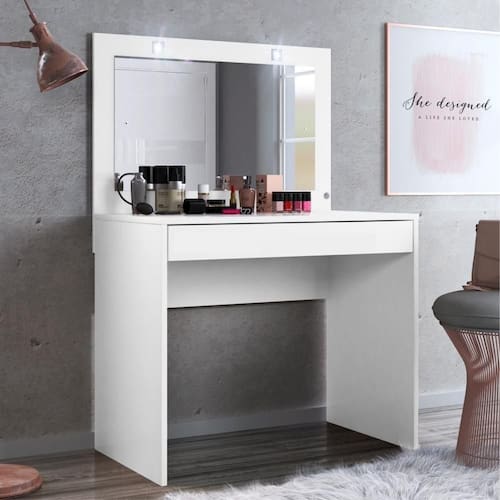 A Penteadeira possui um amplo espelho iluminado por LEDs.