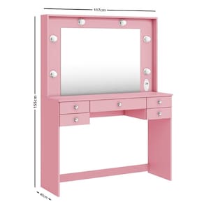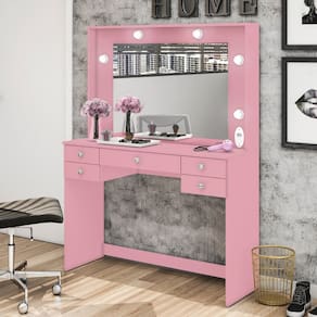 Características: 6 Bocais de lâmpadas 5 Gavetas Acabamento em Pintura UV Acompanha espelho Corrediças telescópicas Estrutura em MDP 15mm e MDF 3mm Lâmpadas não inclusas Puxadores em ABS