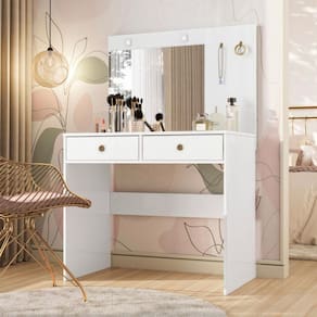 A Penteadeira Camarim com Espelho Ideal da Moval e perfeita para voce que gosta de modernidade, elegancia e precisa de espaco. Voce podera organizar suas maquiagens, perfumes, escovas e acessorios em um so lugar. Alem disso ela e perfeita para decorar o ambiente e deixar seu quarto mais bonito. Conta com espelho e 2 gaveta para voce guardar seus objetos. Qualidade e elegancia aqui!