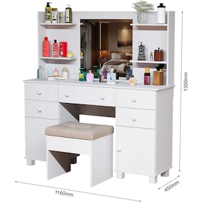 Dimensões Penteadeira Altura: 135 cm Largura: 45 cm Comprimento: 116 cm