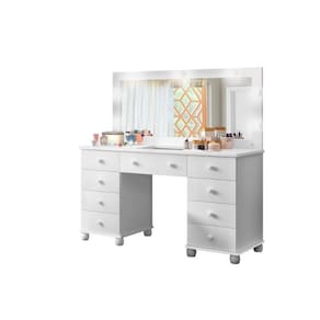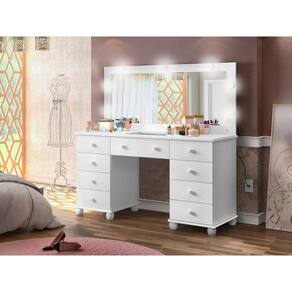 Com um design elegante em branco apresenta 9 gavetas espaçosas para organizar diversos itens, além da luz de LED integrada ao espelho, proporcionando iluminação de qualidade para uma melhor visualização e precisão nas rotinas de beleza.