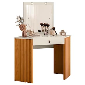 Além disso, essa penteadeira de canto não é apenas prática, mas também dá um toque de sofisticação a qualquer espaço. O puxador em ABS com acabamento em sintético exala elegância, enquanto as laterais com acabamento ripado criam uma estética moderna. Se você quer um cantinho só seu para elaborar as mais diversas makes e, ainda, dar um toque especial ao seu quarto, essa penteadeira com LED é a escolha perfeita. Isso mesmo, com LED para você iluminar a sua rotina de beleza e proporcionar uma iluminação ideal para que você possa aplicar maquiagem sem esforço ou pentear o cabelo com precisão. Diga adeus aos cantos mal iluminados e dê as boas-vindas a uma área bem iluminada, dedicada aos seus cuidados pessoais.