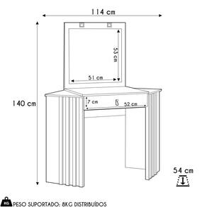 Altura: 140 cm | AssemblyRequired: Sim, sugerimos a contratação do nosso serviço de montagem (para os CEPs em que o serviço está dispon | Color: CinamomoOff White | ColorFamily: CinamomoOff White | ColorSimple: CinamomoOff White | ColorSupplier: CinamomoOff White | Cor: CinamomoOff White | Gênero: Unisex | Largura: 114 cm | Manual: Sim | Marca: Albatroz | Material: MDP | MaterialFamily: MDP | Origem: | OriginCountry: | OriginState: PR | Peso: 30 kg | Peso Suportado: 8 Kg | ProductHeight: 140 | ProductInstructions: Produto para uso em ambiente interno, nao devendo ficar exposto ao sol, calor e umidade excessivos. | ProductLength: 54 | ProductWarranty: 90 dias após o do produto | ProductWeight: 30 | ProductWidth: 114 | Profundidade: 54 cm | Requere montagem: Sim | SizeDescription: 140 x 114 x 54 cm | SupplierSimpleName: Penteadeira Camarim de Canto com Espelho 1 Gaveta Glitter CinamomoOff White - Albatroz | Tipo de Garantia: Fabricante
