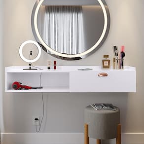 Transforme seu quarto com a penteadeira suspensa Decor, um móvel compacto e funcional, que combina organização e elegância. Ideal para otimizar o espaço, ela possui um nicho decorativo, uma porta com amplo espaço interno e um tampo espaçoso, perfeito para acomodar seus itens de beleza ou acessórios. Com um design moderno e minimalista, esta penteadeira é a escolha certa para quem busca um toque de sofisticação no ambiente.