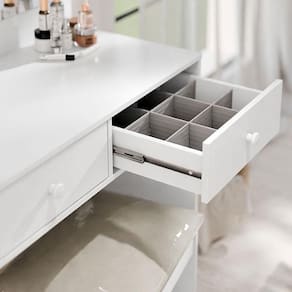Penteadeira Camarim e Banqueta Maia com Almofada Branco Luapa Móveis