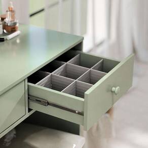 A Penteadeira Camarim Maia foi desenvolvida para tornar seu autocuidado ainda mais especial, sendo um móvel ideal para quem busca praticidade, elegância e sofisticação, inclui uma banqueta que complementa perfeitamente o conjunto. A penteadeira possui 02 gavetas sendo 01 com nicho porta jóias com corrediças telescópicas, 02 leds integrados garantindo uma iluminação perfeita para maquiagem e cuidados diários, acompanha espelho, MDP 12mm no quadro e lateral de gavetas, restante todo 15mm e sapatas de plástico nas laterais para não ficar direto no chão. A banqueta tem seu design minimalista, com estrutura em madeira de acabamento impecável, pensada para valorizar ambientes com naturalidade e delicadeza. Compre agora sua Penteadeira Camarim e Banqueta Maia fabricados pela Luapa Móveis e viva a experiência de se cuidar com estilo todos os dias!
