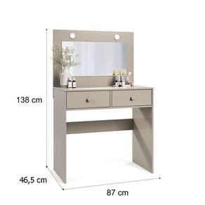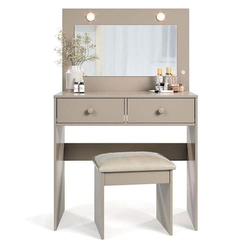 A Penteadeira Camarim Maia foi desenvolvida para tornar seu autocuidado ainda mais especial, sendo um móvel ideal para quem busca praticidade, elegância e sofisticação, inclui uma banqueta que complementa perfeitamente o conjunto. A penteadeira possui 02 gavetas sendo 01 com nicho porta jóias com corrediças telescópicas, 02 leds integrados garantindo uma iluminação perfeita para maquiagem e cuidados diários, acompanha espelho, MDP 12mm no quadro e lateral de gavetas, restante todo 15mm e sapatas de plástico nas laterais para não ficar direto no chão. A banqueta tem seu design minimalista, com estrutura em madeira de acabamento impecável, pensada para valorizar ambientes com naturalidade e delicadeza. Compre agora sua Penteadeira Camarim e Banqueta Maia fabricados pela Luapa Móveis e viva a experiência de se cuidar com estilo todos os dias!