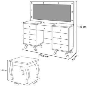 Dimensões dos Produtos Penteadeira: 136 x 145 x 43 cm.