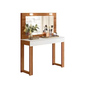 A penteadeira camarim gala é para você que conta com pouco espaço, mas deseja um local apropriado para o momento da make. Um móvel incrível, no que se refere a funcionalidade, praticidade e organização. Acabamento da Gaveta: Pintura UV Acabamento dos Pés: Pintura Acompanha Banqueta: Não Acompanha Lâmpada: Não Altura do Espelho: 45 cm Altura dos Pés: 75 cm Ambiente Principal: Quarto Complexidade da Montagem: Alta: deve ser montado por um montador especializado Cor: Cinamomo Mel/Branco Cor do Produto: Cinamomo Mel/Branco Cor Interna: Cinamomo Mel Escala de Brilho: Fosco Escala de Brilho da Gaveta: Fosco Espessura do Espelho: 3 mm Fita Integrada: Sim Formato do Espelho: Retangular Gaveta com Chave: Não Informações Complementares: Kit 2 soquetes para colocação de lâmpadas(não acompanha lâmpadas) gaveta com corrediças telescópicas, pés de 25mm Itens Inclusos: 1 Penteadeira kit ferragens e manual de montagem Largura do Espelho: 90 cm Linha ou Coleção: Glamour Manual de Montagem e Instalação: https://cdn2.madeiramadeira.com.br/atributo/mobler/1330714-3003038-esc-penteadeira-gala-provjeto-339-14-05-2023.pdf Material da Gaveta: MDP Material dos Pés: MDP Material Principal: MDP Necessita Montagem: Sim Origem do Produto: Nacional Pés Reguláveis: Não Peso: 24,5 kg Peso Máximo por Gaveta: 5 kg Possui iluminação: Sim Possui Moldura: Não Possui Pés: 04 Possui Porta Objetos: Não Possui Portas: Não Possui Prateleiras: Não Possui Rodízio: Não Possui Vidro: Não Quantidade de Espelho: 01 Recomendações de Uso, Manutenção e Limpeza: para conservar a aparência e a durabilidade do produto: - Utilizar pano macio e úmido; - não usar solventes ou abrasivos Sapatas Niveladoras: Não Sistema de Montagem: Cavilhas, parafusos, sapatas, prego, tapa furos Suporta Até (kg): 20 kg Tipo de Corrediça da Gaveta: Metálica Telescópica Tipo de Fixação do Espelho: Fita Dupla Face Tipo de Puxador da Gaveta: Embutido