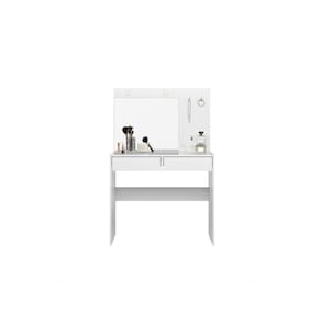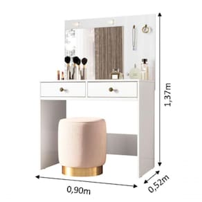 A Penteadeira Camarim Ideal da Moval vem para agregar ainda mais o aconchego do seu quarto e facilitar na organização dos seus acessórios. Fabricada em MDP, contém espelho central e 2 gavetas. 2 Gavetas Corrediças telescópicas 2 Luminária de LED Espelho fixado na peça Puxadores na cor bronze Ganchos porta objetos