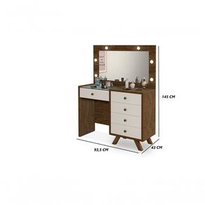 Organize seus itens de beleza com a penteadeira camarim Luna, ideal para maquiagem, cuidados pessoais e acessórios. Com 9 gavetas espaçosas, incluindo gaveta central com colmeia, ela facilita a separação de cosméticos e pequenos objetos. O espelho inteiro com kit de LED e interruptor bivolt oferece iluminação adequada para uma visualização mais precisa durante a rotina de beleza. Produzida em MDF branco fosco com pés em madeira e corrediças telescópicas, combina praticidade no uso diário com visual retrô. É uma ótima escolha para quartos, closets ou ambientes de beleza que buscam funcionalidade e design harmonioso.