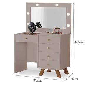 A Penteadeira Camarim Luna foi feita para renovar e modernizar seu ambiente, trazendo praticidade, organização e beleza para o seu dia a dia, inclui uma banqueta que complementa perfeitamente o conjunto. A penteadeira possui 05 gavetas sendo 01 com colmeia organizadora, tampo de vidro e corrediças telescópicas, 06 leds integrados garantindo uma iluminação perfeita para maquiagem e cuidados diários, acompanha espelho e pés em madeira. A banqueta tem uma estrutura resistente, ideal para deixar seu ambiente mais charmoso, desenvolvida em MDP e pés torneados. Compre agora sua Penteadeira Camarim Luna e Banqueta Mani fabricados pela Luapa Móveis e viva a experiência de se cuidar com estilo todos os dias!