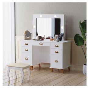 Penteadeira Camarim New Seul com Banqueta Almofadada Branco - Luapa