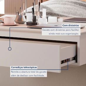 Características: Produto MDF Tampo de 25mm chanfrado Possuí LED bivolt ao redor do espelho Corrediças telescópicas Gaveta interna com divisórias