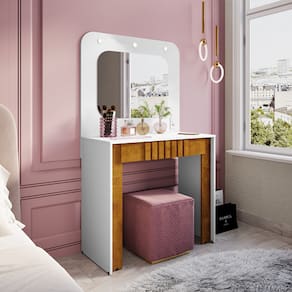 A Penteadeira Camarim Rouge - Bechara Móveis conta com iluminação em LED para uma luz uniforme e suave, ideal para maquiagem. Seu design moderno é realçado por um espelho de formato orgânico, combinando estética e funcionalidade. Com uma gaveta de abertura total e deslizamento suave, você tem acesso fácil a todos os itens, além de uma gaveta organizadora para manter maquiagem e acessórios sempre arrumados e bonitos. Dimensões do Produto Montado: Altura: 156cm Largura: 90cm Comprimento: 43,5cm Observações: – Iluminação em LED – Gaveta com corrediças telescópicas – Gaveta organizadora – Espelho orgânico Marca: Bechara Móveis Modelo: Camarim Rouge Referência: 2076694 ATENÇÃO: Não nos responsabilizamos pela montagem deste produto. Aconselhamos a contratação de um profissional.
