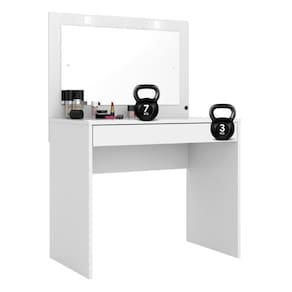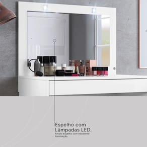 Penteadeira Camarim Sofia 1 Gaveta com Espelho com Iluminação LED Estrutura em Madeira Branco