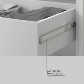 Gaveta com corrediças telescópicas: abertura suave para acessar itens com praticidade.