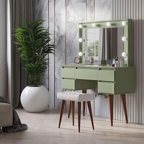 Detalhes Material Dos Pés Madeira Tomadas E Soquete Para Lâmpadas Sim Tipo De Soquete E27 Tipo De Corrediça Telescópica Pintura E Revestimento UV Escala De Brilho Alto Brilho Suporta Até 52,25 Kg Estrutura Do Fundo HFF Espessura Do Espelho 6mm Pés Removíveis Sim Possui Luz Sim, Led Quantidade De Gavetas 5 Quantidade De Pés 4 Necessita Fixação Na Parede Não Acompanha Lâmpadas Não Acompanha Banco Sim Medidas Do Banco 515 x 450 x 300mm (AxLxC) Estilo Da Almofada Capitonê Necessita De Montagem Sim Complexidade De Montagem Média Sistema De Montagem Girofix, Cavilha, Prego e Parafusos Quantidade De Volumes 2 Conteúdo da embalagem 1 Penteadeira Camarim Dimensões aproximadas do produto 152,5 x 120 x 45 cm (A x L x C) Dimensões aproximadas da embalagem 25 x 122 x 71 cm (A x L x C) Peso aproximado do produto 49,63 Kg Peso aproximado da embalagem 54 Kg Garantia do fornecedor 3 Meses Informações Adicionais Qualidade e durabilidade