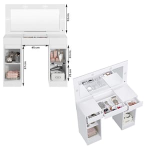 Material: MDP, tampo de vidro de 4mm e espelho 86cm x 38cm ;