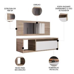 Com design minimalista, essa penteadeira suspensa, além de otimizar espaço de circulação, ainda conta com um compartimento interno, ideal para organizar os itens de maquiagens, produtos skincare e demais acessórios de beleza. Já o nicho é um ótimo aliado para dispor alguma decoração e deixar o espaço ainda mais acolhedor. Ahh, lembrando que é uma penteadeira com espelho, ou seja, um móvel completo para você se olhar e se sentir ainda mais bela e incrível.