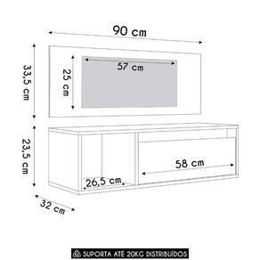 Bancada (L x A x P): 90 x 23,5 x32 cm.
